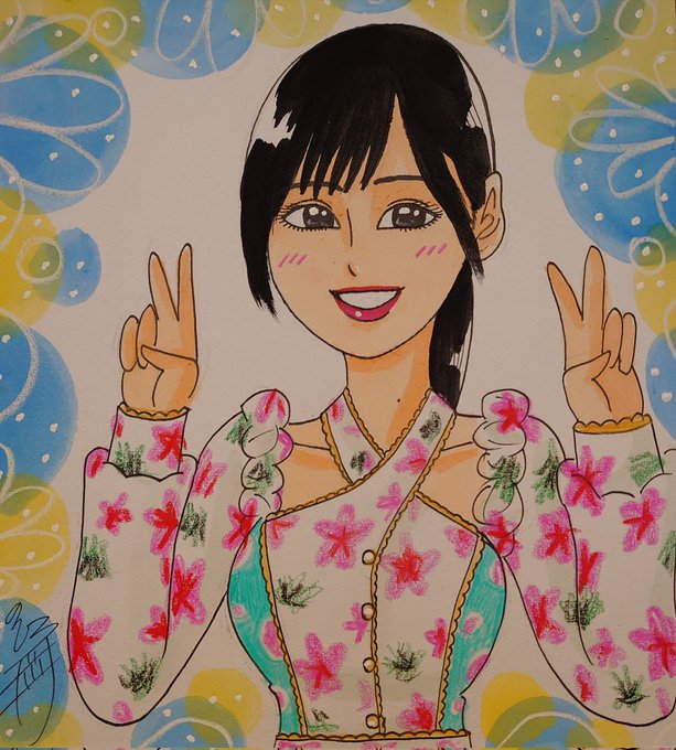 ドン! 今日描いた乃木坂ちゃんで〜す(*^^*) かっきー🎸\(^o^)/ #似顔絵 #乃木坂46 #賀喜遥香 #かっきー #乃木坂46好きな人と繋がりたい #乃木坂イラスト #乃木坂46真夏の全国ツアー2022神宮 #好きというのはロックだぜ