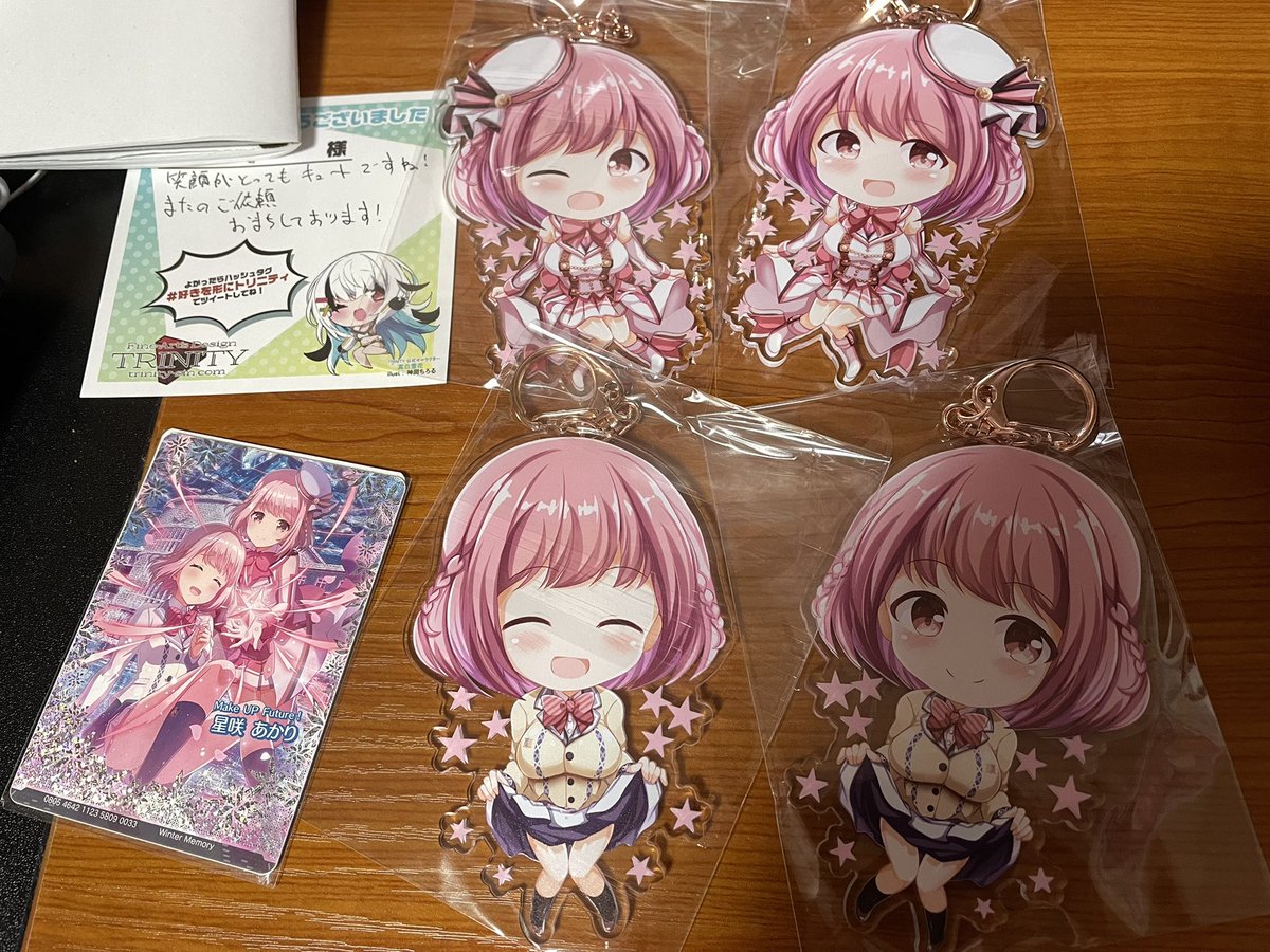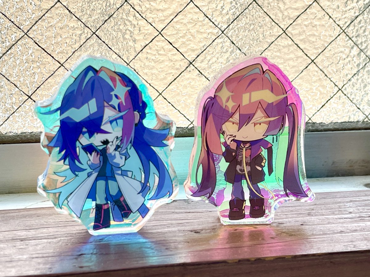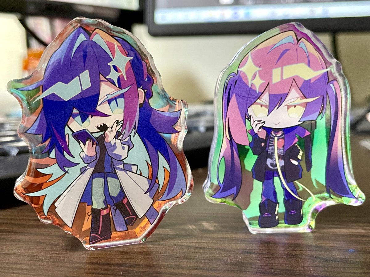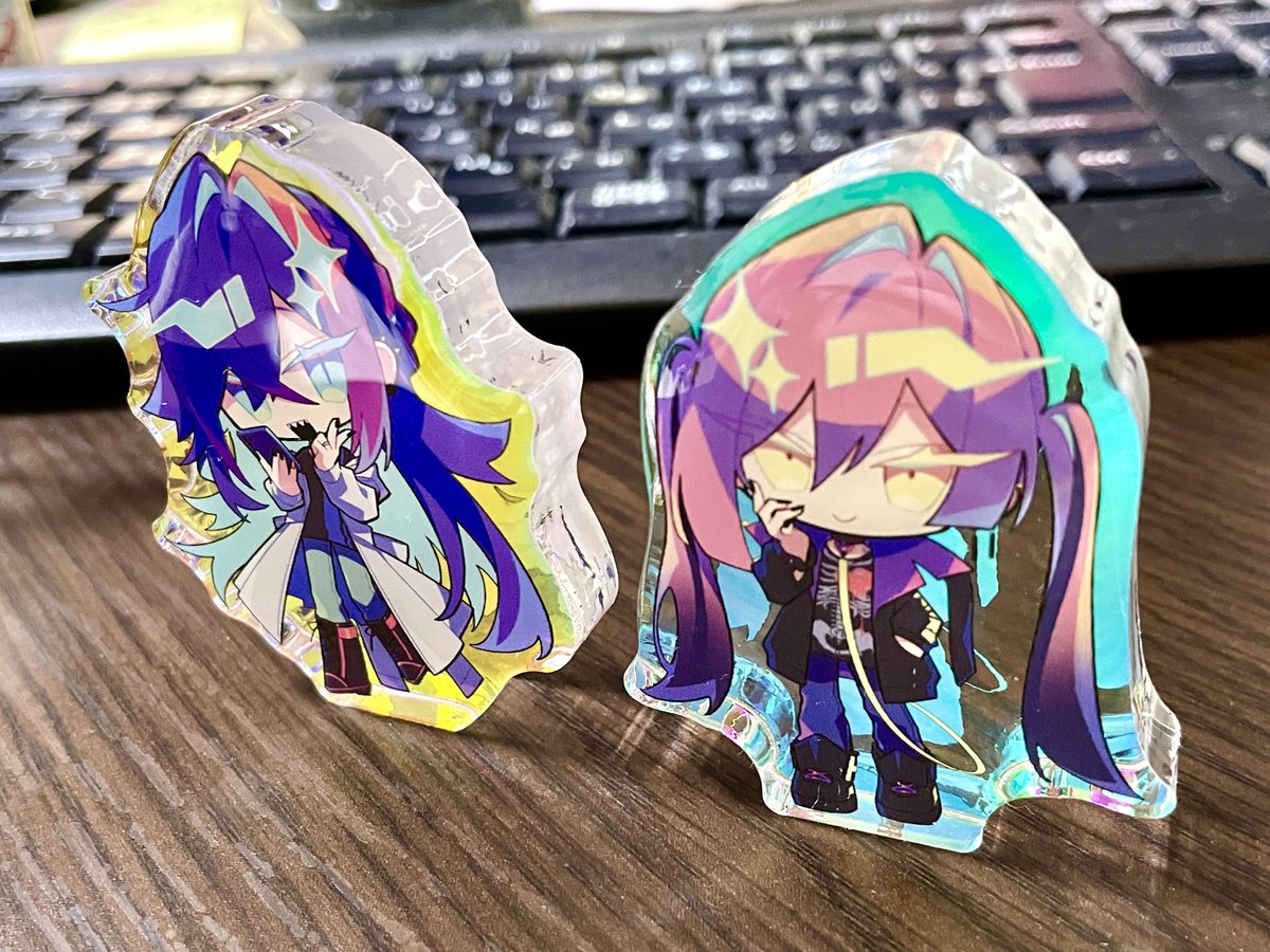 フリュまとめ本に合わせて作ったフリューさんのアクスタ! ステンドグラス風の背景に星のチャーム、フリューさんには箔押しもしてもらいました🌟 とても丁寧に要望を聞いて叶えてくださったトリニティさん、ありがとうございました! #好きを形にトリニティ twitter.com/i/web/status/1…