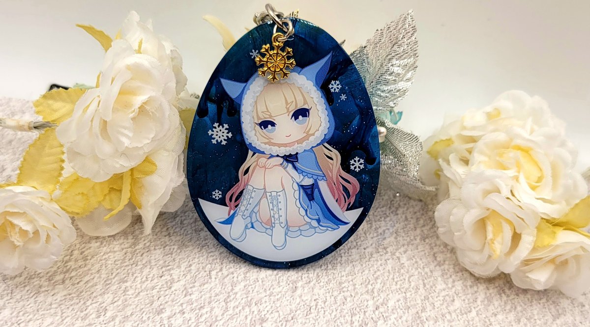 #コミティア142 で頒布予定の新作アクキーです! 今回もトリニティ(@trinity_f_a_d)様に作って頂きました! 特殊アクリル使用で冬っぽさを意識したデザインになってます! #COMITIA142 #イラスト #グッズ #好きを形にトリニティ