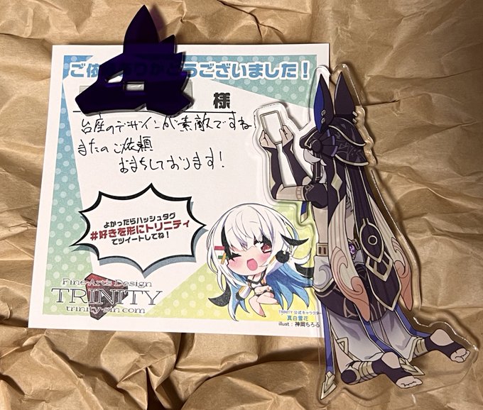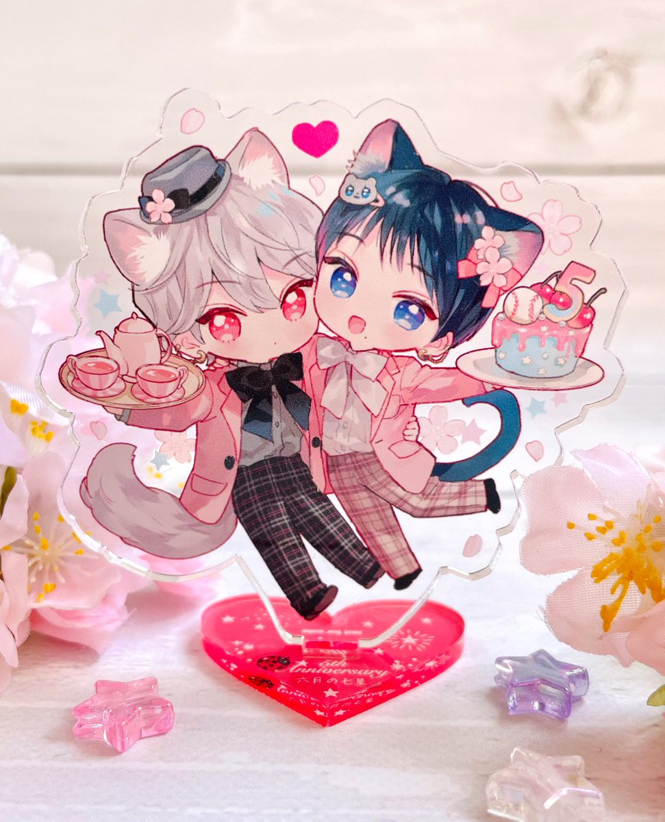 HMVさまのサイン会でお渡しするお土産用に作ったアクスタが完成しました!🌸 かわいくできた🐱( '-' 🐱 ) 今回もトリニティさまにお願いしました️🤍 お時間ない中素敵に作っていただきありがとうございます! #六月の七星 #好きを形にトリニティ