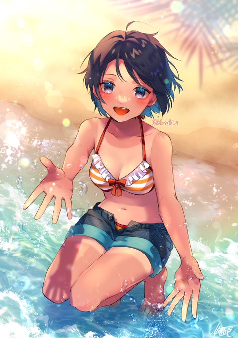 「さっきは惜しかったけど今度はうまくいくかしら」 「今話しかけんな」 83日目 創作キャラ 夏のももりん完成です #100日チャレンジ #如月五日の100日チャレンジ #せんまほ #創作男女