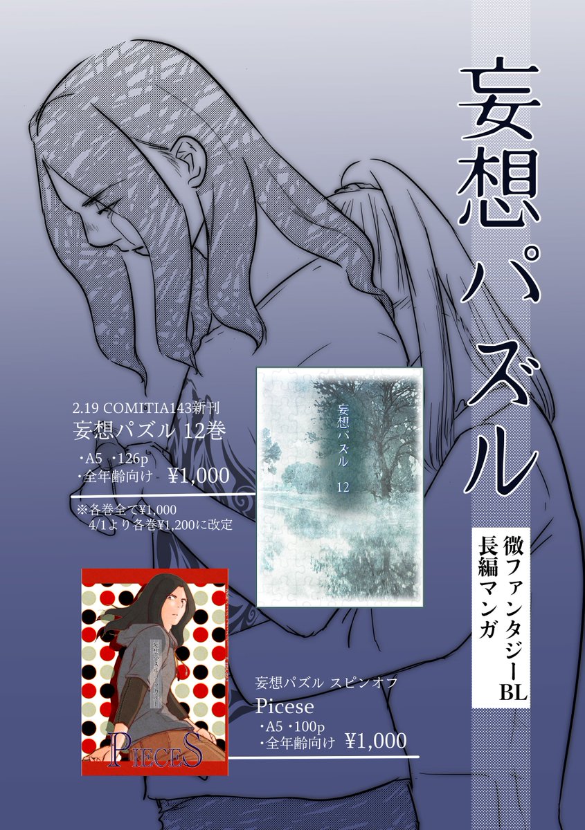 いよいよ明日 #COMITIA143 です。 ◆SP:ビッグサイト東6ホールM33a ◆サークル名:gano 『#妄想パズル 』新刊(12巻)用意してお待ちしております。 第一話サンプルはこちらから(↓) pixiv.net/artworks/87384…