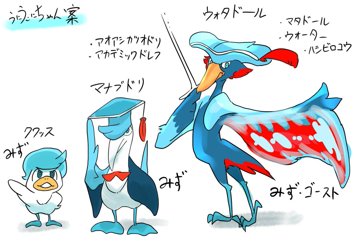 【今回は視聴者参加型!】 ホゲータ、ニャオハ、クワッスの進化系妄想イラストを募集しています! みんなの妄想を俺たちにぶつけてくれー! ワーキャー言いながら楽しく見る予定!気軽に参加してね🐊 #妄想御三家進化予想図会議 を付けてTwitterに投稿するか、DMで直接うにうーにに送ってね! 例↓