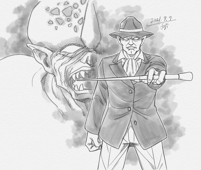 ハッピーハロウィィ〜ン🎃!! 博士のハロウィンイラスト(≧∇≦) ドドォォォォ〜ン!! #はろうぃん2022 #ハッピーハロウィン #10月31日はハロウィーン #Halloween #妖怪 #鬼火 #ジャック・オー・ランタン #Drリサイクル #博士 #科学者 #改造 #妖怪人間ベム #BEM #イラスト #ハロウィン絵