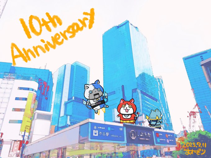 え? 妖怪ウォッチって、まだ発売から10周年しか経ってないの⁉︎ 30年ぐらい前からある感覚だったわ。 妖怪写真館はまだ現役気分なんだけどね。 柴田亜美 #妖怪ウォッチ10周年 #妖怪10周年おめでとう