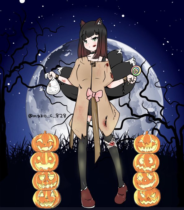 ✨Happy Halloween✨ 🍬👻Trick or Treat🎃🍭 #創作 #オリキャラ #ハロウィンイラスト #女の子イラスト #妖狐 #絵描きさんと繋がりたい #イラスト好きさんと繋がりたい