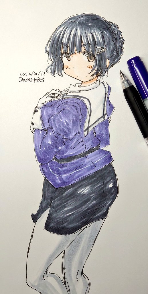 #妙高 #艦これ版深夜の真剣お絵描き60分一本勝負 #艦これ版真剣お絵描き60分一本勝負_20230803 アンソロのウインクチャレンジを思い出して、そういえば妙高はウインクできるよねぇ?…と思ったのでさせてみた 私が描くと幼くなるねぇ~
