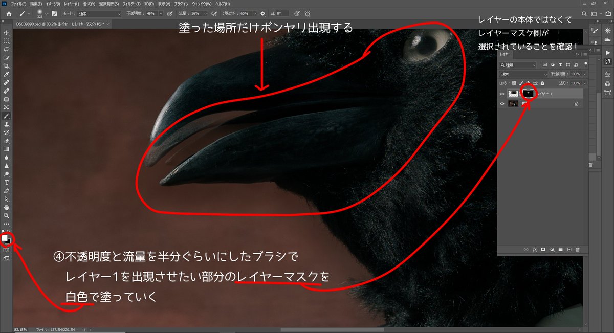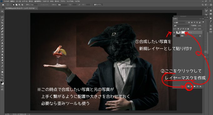 Photoshopのレイヤーマスク機能+ブラシ手塗りを使って写真を合成合体させるという古代文明でゴリ押しています。 マスクが汚くて、改めて見るとなんじゃこりゃってなったけど…… まぁ、重ねた時にバレなきゃえぇんよ。多分。 #姉二号の撮影メイキング twitter.com/Ne3Mk2/status/…