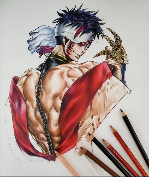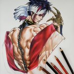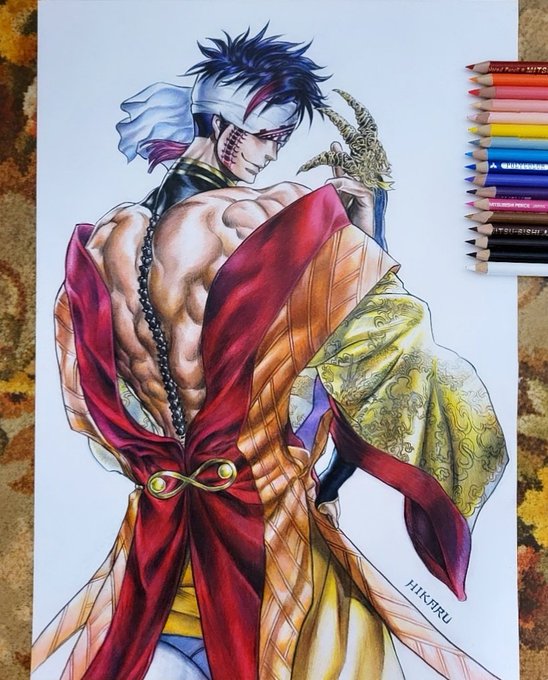 終末のワルキューレの始皇帝を色鉛筆で描きました🙏 刺繍の部分は見えなかったのでそれっぽく描いてみました 試合の決着が付く度に悲しくなっちゃいます 人間も神様も死なないで欲しいなぁ😅 #イラスト #色鉛筆 #終末のワルキューレ #始皇帝 #絵描きさんと繫がりたい