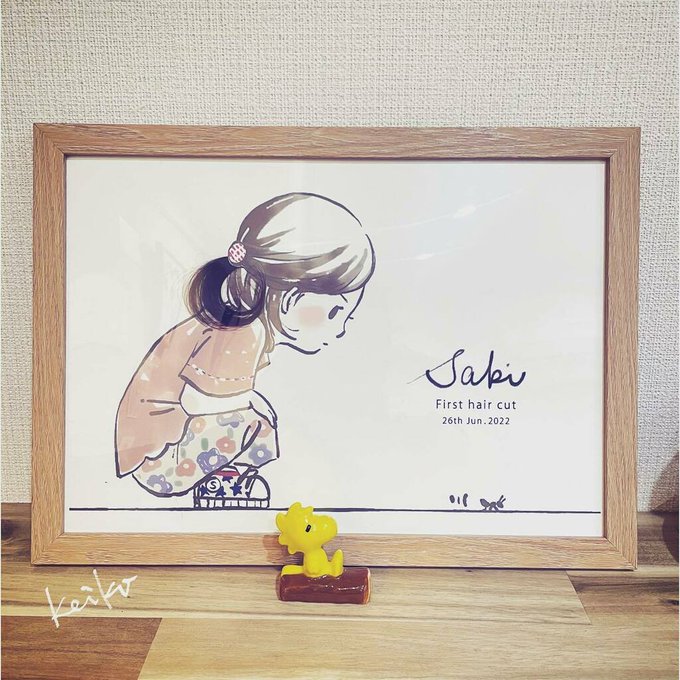 先日娘のヘアカットをしたので、ファーストカットアートを自作してみました! アリの観察が好きなムスメ… #illustration #firstcutebaby #イラスト #ファーストカット #娘かわいい