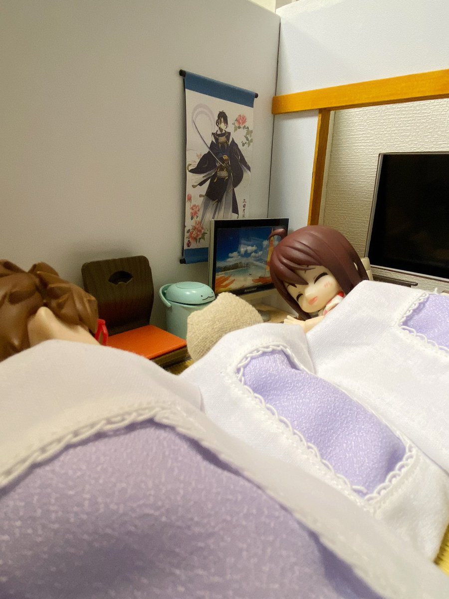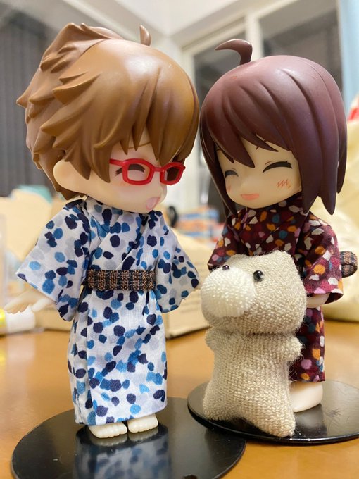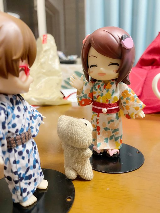 お風呂から上がったら帯の接着剤がだいぶ乾いていたのでディノくんとアンちゃんに着てもらいました😊 温泉浴衣、一応の完成です😆💕 背景が和室じゃないのは時間がないので😭 また八千穂でこのコたちの温泉浴衣姿を和室で撮りたいと思います✨️ #キューポッシュ #子ぐまのグリちゃん
