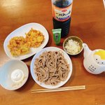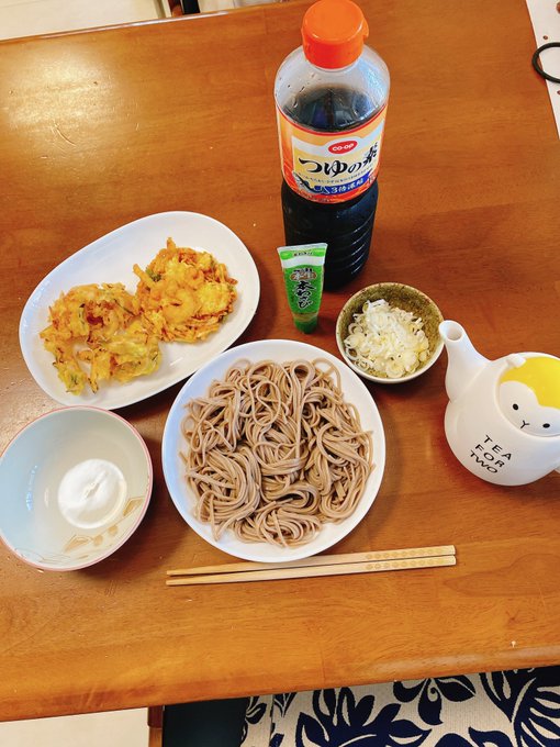 お昼は天ぷらと冷やしそばにしました😊 イカとタコと紅生姜の天ぷらがおいしかったです☺️ お嫁ちゃんはまだお腹が空かないようで🤔 空いたら煮麺をつくります😊 #キューポッシュ #子ぐまのグリちゃん