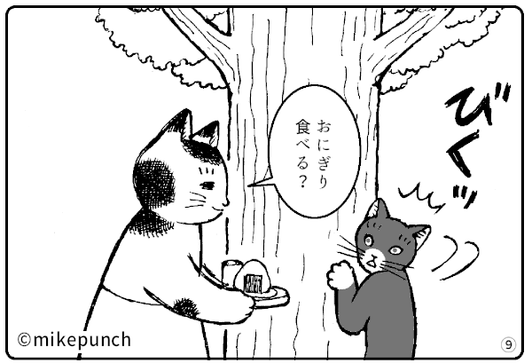 おにぎり猫のものがたり 第四話 飢えた子ども・その① note.com/mikepunch/n/n6… mikepunch.net/onigirinekosta… 小梅の店を木の陰からじっと見ている子ども。 その子におにぎりを持っていくと・・。 その②に続きます。 #おにぎり猫のものがたり #子どもの貧困 #漫画が読めるハッシュタグ #こどもの日