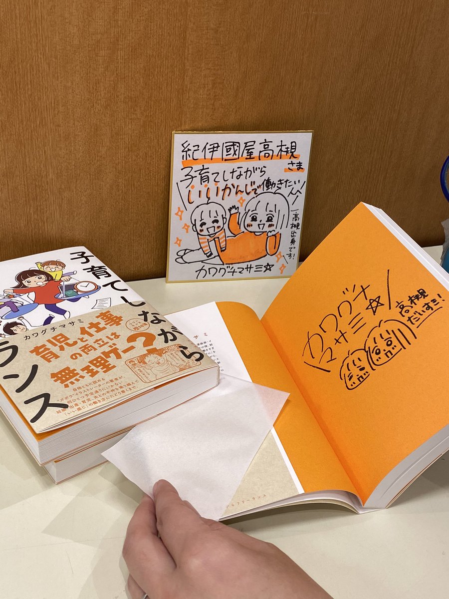 紀伊國屋書店高槻さん@Kino_Takatsuki でサイン色紙と限定4冊サイン本を描かせていただきました☺️ 担当の方が #子育てフリーランス本 読んでくださってました😭ここは昔から絵本コーナーが充実していてお子様連れの方も来やすいと思います✨子育てコミックエッセイコーナーに置いていただいてます📙