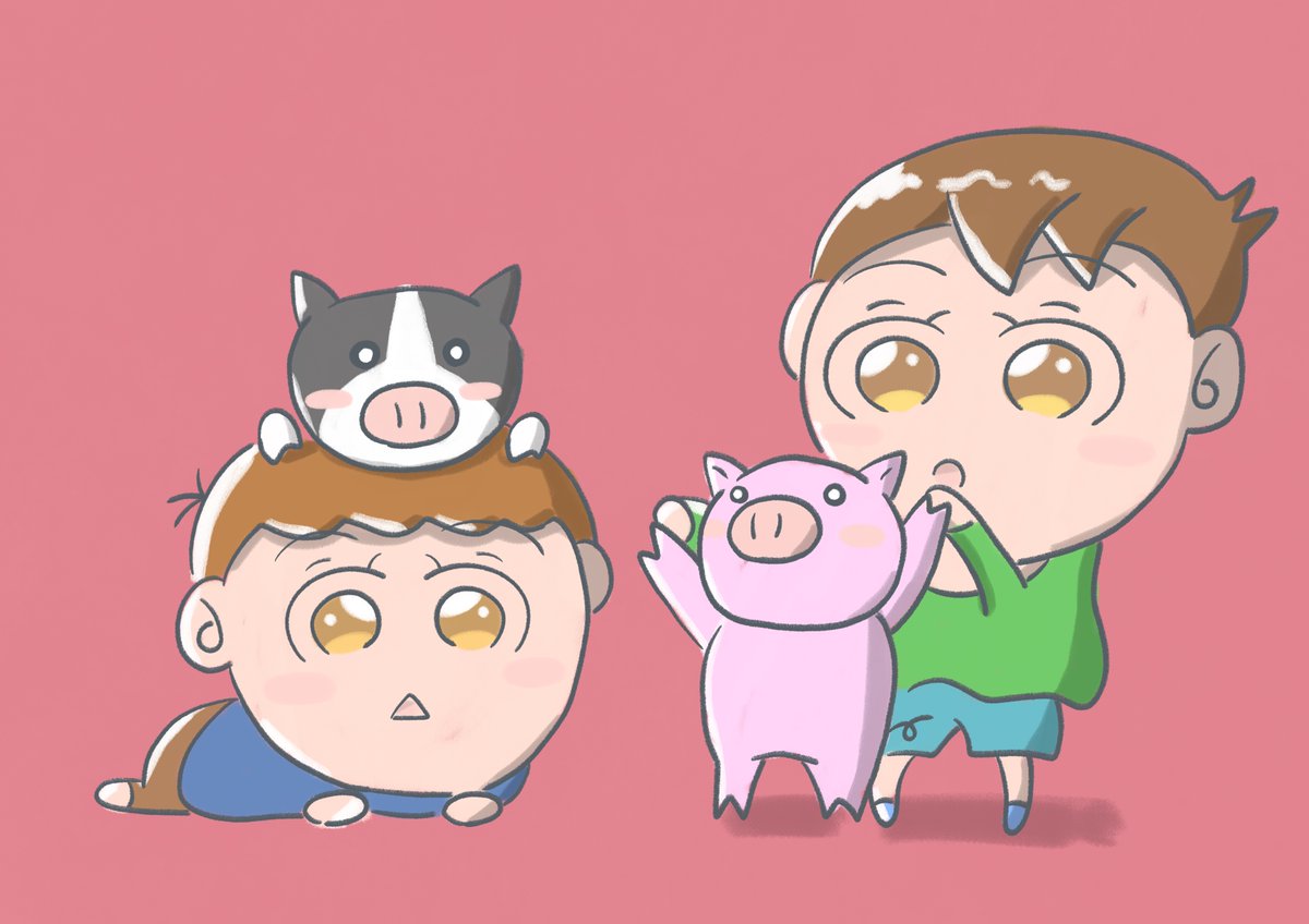 こぶたが6ぴき🐷 🐷 🐷 🐷 🐷 🐷 #illustration #イラスト #こぶた #子豚 #piglet #cuteillustration #かわいいイラスト #動物のイラスト #animalillustration