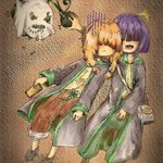 創作【魔女の魔種】ハロウィンイラスト 綿造形のチゥナ&華造形のリィク 魔種の華にハンカチ被せて脅かしたら、想像以上に驚いてしまった・・・! #香辛料シナモン #子魔女 #ハロウィン #オリジナルイラスト #オリジナルキャラクター