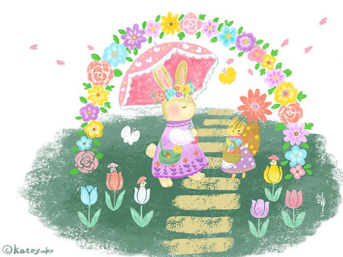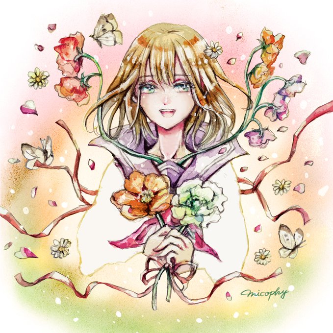 春はスタートの季節。新しいことへの期待感とその先に華々しい未来が待っていることを願って描きました。 花言葉『門出』『恋の予感』『期待・希望』『集う喜び』 #デザフェス57 で頒布予定の新刊イラスト集用描き下ろし作品です。 #illustration #アナログ #季節ほのめく芸術春祭2023