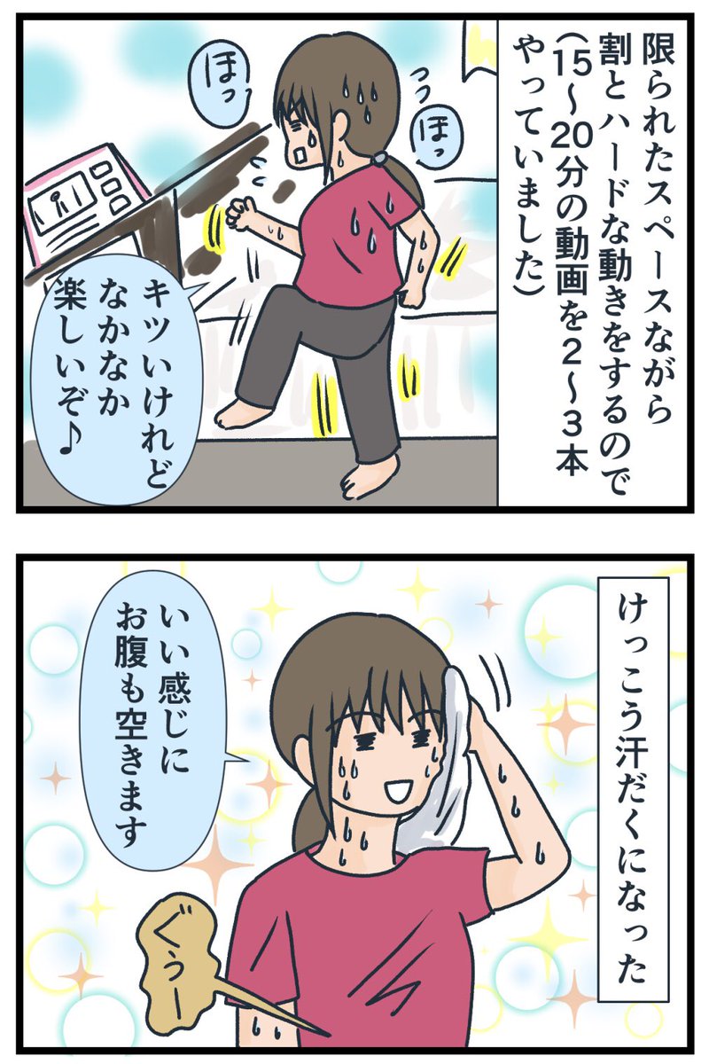 宅トレのいつものパターン。 まだ成果はそんなに表れてないけど…😅 体動かすのはシンプルに楽しい! #ちゅっちゃんの毎日 #マンガちゅっちゃんの毎日 #宅トレ #筋トレ #イラスト #illustration #ゆるいイラスト