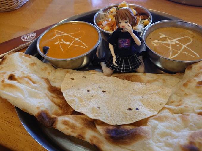 インドカレーを食べにきましたw ナンをちぎって、カレーにつける…そして咀嚼。スパイスの香りが口から鼻にふわっと広がり、喉の奥に辛さが残る。最後にラッシーを飲んでリセット。このコンボサイコーです!! #アサルトリリィドール部 #本場インド料理ルパ #ルパ #インドカレー #宇佐市