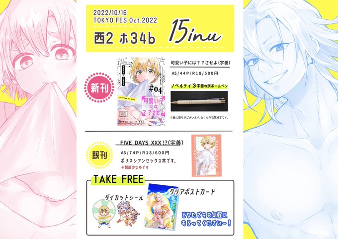 #宇善イベント_サークル参加します 10/16 もうぜんぶ、6おしながきです! 既刊のポリセク本と夏インテの無配も持っていきます。 無配だけでもぜひ〜☺️🙌🏻 【新刊サンプル】 pixiv.net/artworks/10191…