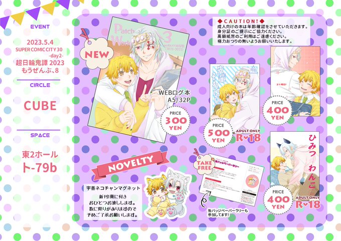 📚5/4もうぜんぶ、8お知らせまとめ💎⚡️ #宇善イベント_サークル参加します 東2 ト-79b「CUBE」 新刊サンプルpixiv.net/artworks/10705… お品書きpixiv.net/artworks/10742… 新刊通販ecs.toranoana.jp/joshi/ec/item/… よろしくお願いします!!!🫶🫶🥳