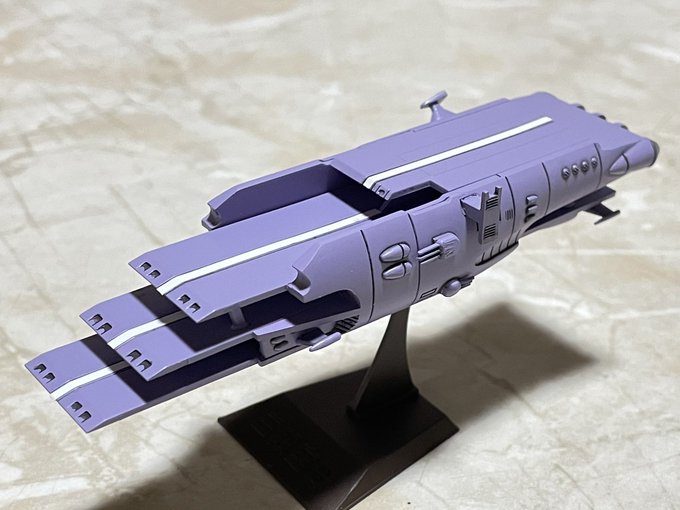 #宇宙戦艦ヤマトメカコレ祭り #宇宙戦艦ヤマトメカコレ祭り完成 三段空母 紫の三段空母も完成しました 飛行甲板の白線はハセガワのホワイトフィニッシュを貼っています いつか緑のも作りたいですね #セーブザマナティー