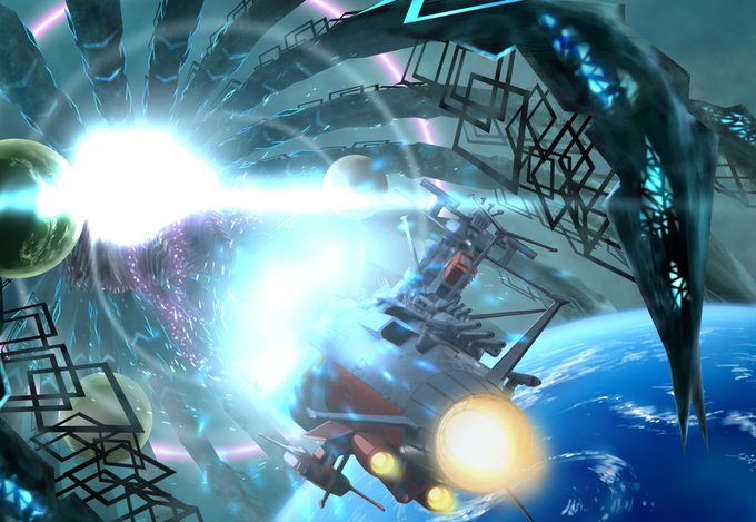 #頑張って描いたのに思った以上に反響が無かった絵 #宇宙戦艦ヤマト2202 滅びの方舟初登場時に、その先を予想して描いた、地球を掴もうとする絵と、超巨大戦艦の予想図。 その後確かにこうはならなかったけど、公式にない絵は無視されましたね^ ^