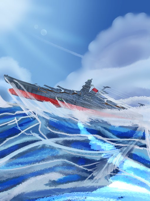 (多分)空と海と雲を初めて描きました!再び地球を飛び立つヤマト!パルスレーザーがどうしても描けません! #絵描きさんと繋がりたい #宇宙戦艦ヤマト #宇宙戦艦ヤマト2202 #やきたてクッキー