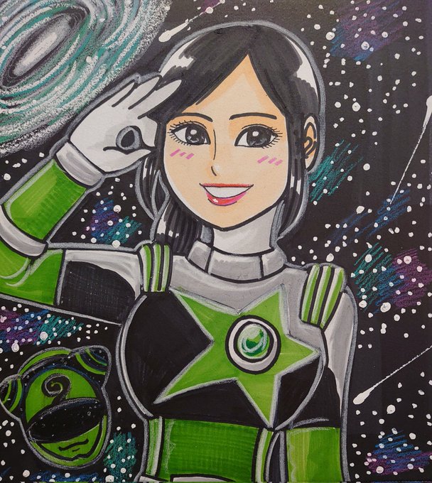 戦隊ヒロインの似顔絵描いてみた(*^^*) シノビスター!カメレオングリーン! の大久保桜子さん #似顔絵 #特撮ヒロイン #戦隊ヒロイン #宇宙戦隊キュウレンジャー #キュウレンジャー #カメレオングリーン #ハミィ #大久保桜子