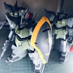 既出のゲルググJと合わせて小隊にしてみました♬ うん、これめっちゃ気に入りました! #ガンプラ #ガンプラの画像を貼るとRTされると聞いて #ガンプラ好きと繋がりたい #戦場まんがシリーズ #宇宙海賊キャプテンハーロック #ゲルググ #ゲルググJ