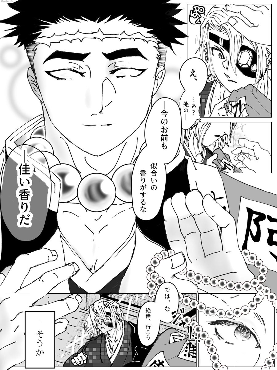 #宇悲ワンドロワンライ お題【匂い】お借りしました T軸の💎さん黃主引退後⚔♨編の直前夏の終わり頃?急接近中の御二人 まだ+関係で左右なしだけど右📿さん推しが描いたので宇悲🏷です(拙宅設定の捏造イベント的な💬があります) 超過ってレベルじゃない時間掛かったので不味かったら外します