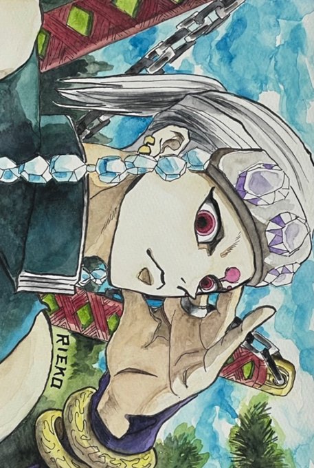 #宇髄天元誕生祭カウントダウン2021 お誕生日まであと一週間となりました✨ キメ学💎先生 過去絵再掲トリミングver. アナログイラスト,透明水彩 twitter.com/riekotashiros/…
