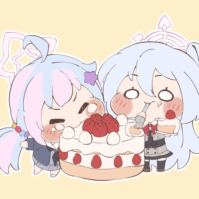 #守月スズミ #来月レイサ #BlueArchive #ブルーアーカイブ #블루아카이브 #ブルアカイラスト部 #ブルアカ #100日チャレンジ #1日1ミニキャラ スズミちゃんお誕生日おめでとう!🎉 勝手にケーキを食べるレイサちゃん(о´∀`о)