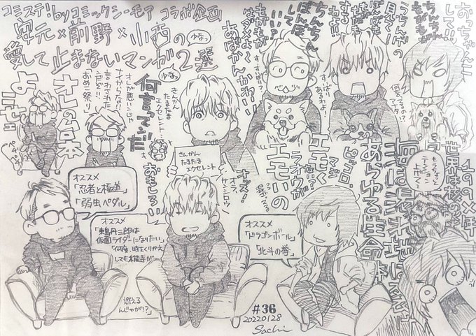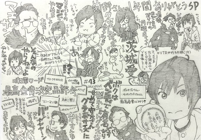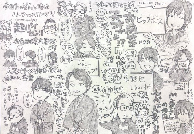夜あそび関係の実況らくがき、2021年1月から11月まで描いた中から各月3枚ずつセレクトしてみました。(12月放送分まだ終わってないしね) いっぱい描いたねえ… #安元仲村と夜あそび #安元前野と夜あそび #森久保仲村とアガる