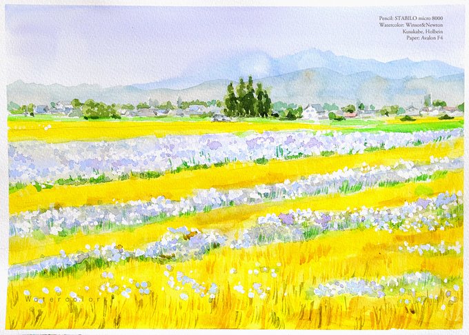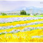 麦秋の安曇野 wheat harvest season 麦との補色の美しい矢車草ですが,実は麦畑に侵入してくる厄介な雑草で,増えすぎたために農家の人たちを困らせています。 F4(240*320mm) #watercolor #art #水彩 #安曇野 For sale↓ shirabe.sunnyday.jp/shucream/top/a…