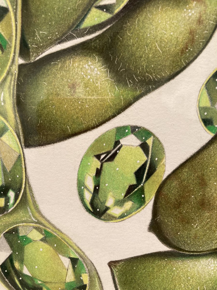 安部祐一朗さんの「生物×宝石」個展作品。 個人的なお気に入り作品。 ・ツル×ガーネット ・マガモ×インペリアルトパーズ ・ウミガメ×サファイア #丸善丸の内本店ギャラリー #安部祐一朗 #色鉛筆画家