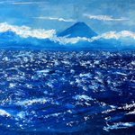 サクラクレパスで描きました。カツオ釣りに行ったときに見た富士山。eichiro.thebase.in #谷内六郎 #安野光雅 #art #illustration #sketch #絵描きさんと繋がりたい #絵を描こう #絵本 #芸術の輪 #みんなで楽しむTwitter展覧会 #青で繋がるみんなの輪 #クレパス #富士山