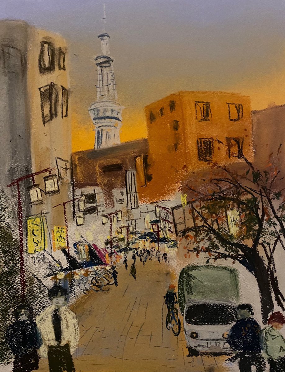 「浅草」32×41㎝(12.6×16.1in ) 「あの街のあの場所を描いてほしい」というリクエストお待ちしてます!お応え出来れば描いてここにあげます。BASEにて販売も可能。eichiro.thebase.in #風景画 #絵描きさんと繋がりたい #谷内六郎 #安野光雅 #art #芸術の輪 #みんなで楽しむTwitter展覧会
