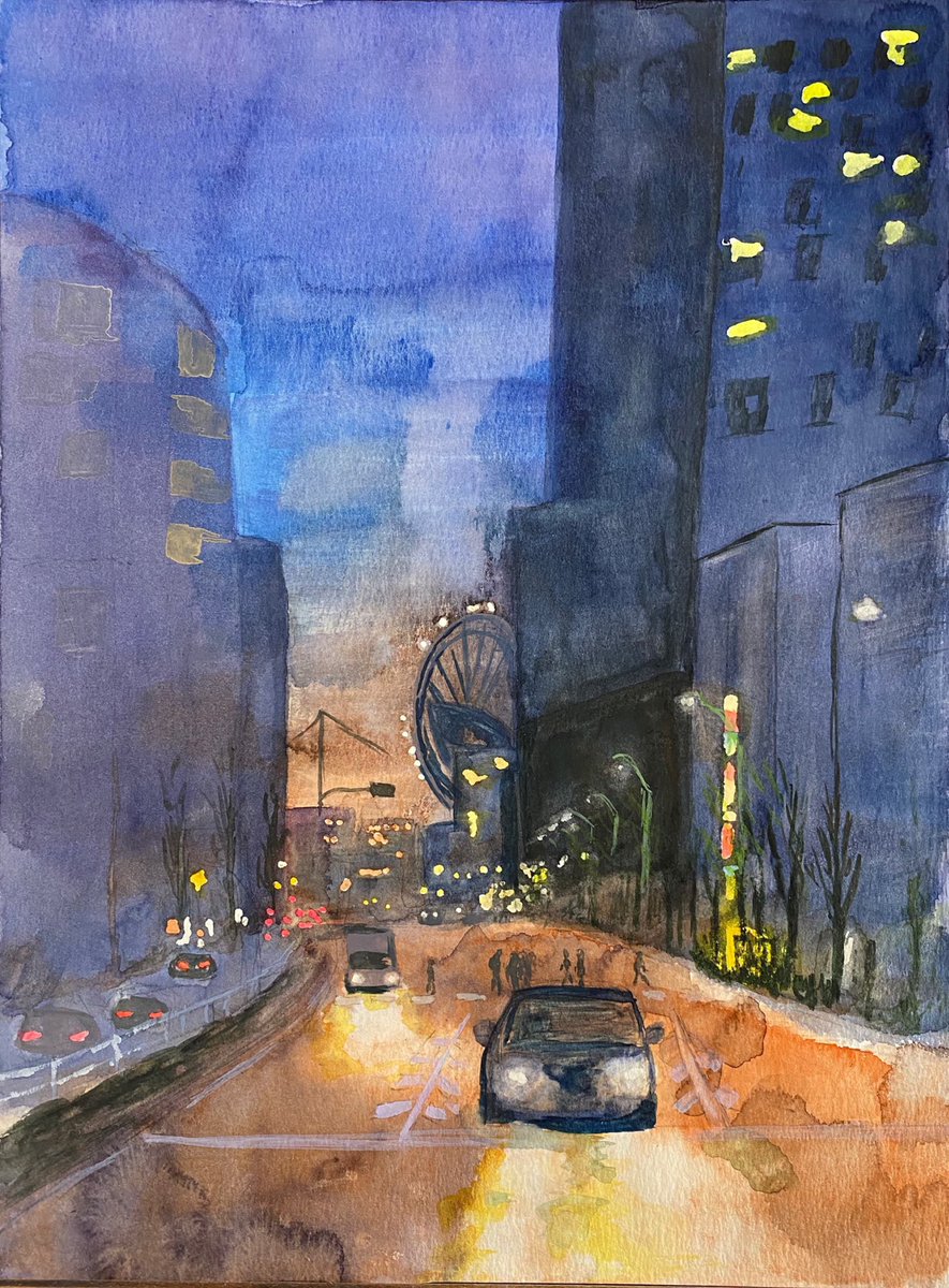 水彩画。奥の観覧車は後楽園、ラ・クーアです。24×33㎝ BASEで販売もしてます。eichiro.thebase.in #水彩画 #谷内六郎 #安野光雅 #art #illustration #sketch #絵描きさんと繋がりたい #絵を描こう #絵本 #芸術の輪 #みんなで楽しむTwitter展覧会 #素朴画 #ナイーブアート