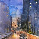 「赤坂見附・弁慶堀」水彩size 24×33㎝ 奥に見えてるのはホテルニューオータニです。 eichiro.thebase.in #谷内六郎 #安野光雅 #art #illustration #sketch #絵描きさんと繋がりたい #芸術の輪 #みんなで楽しむTwitter展覧会 #素朴画 #冬の創作クラスターフォロー祭り #東京の風景