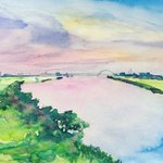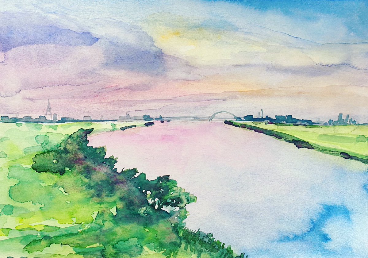 「荒川」24×33㎝水彩画 今までで一番適当に描いたら今までで一番イメージに近い絵が描けた。eichiro.thebase.in #水彩画 #透明水彩 #安野光雅 #art #illustration #sketch #絵描きさんと繋がりたい #芸術の輪 #みんなで楽しむTwitter展覧会 #素朴画 #冬の創作クラスターフォロー祭り