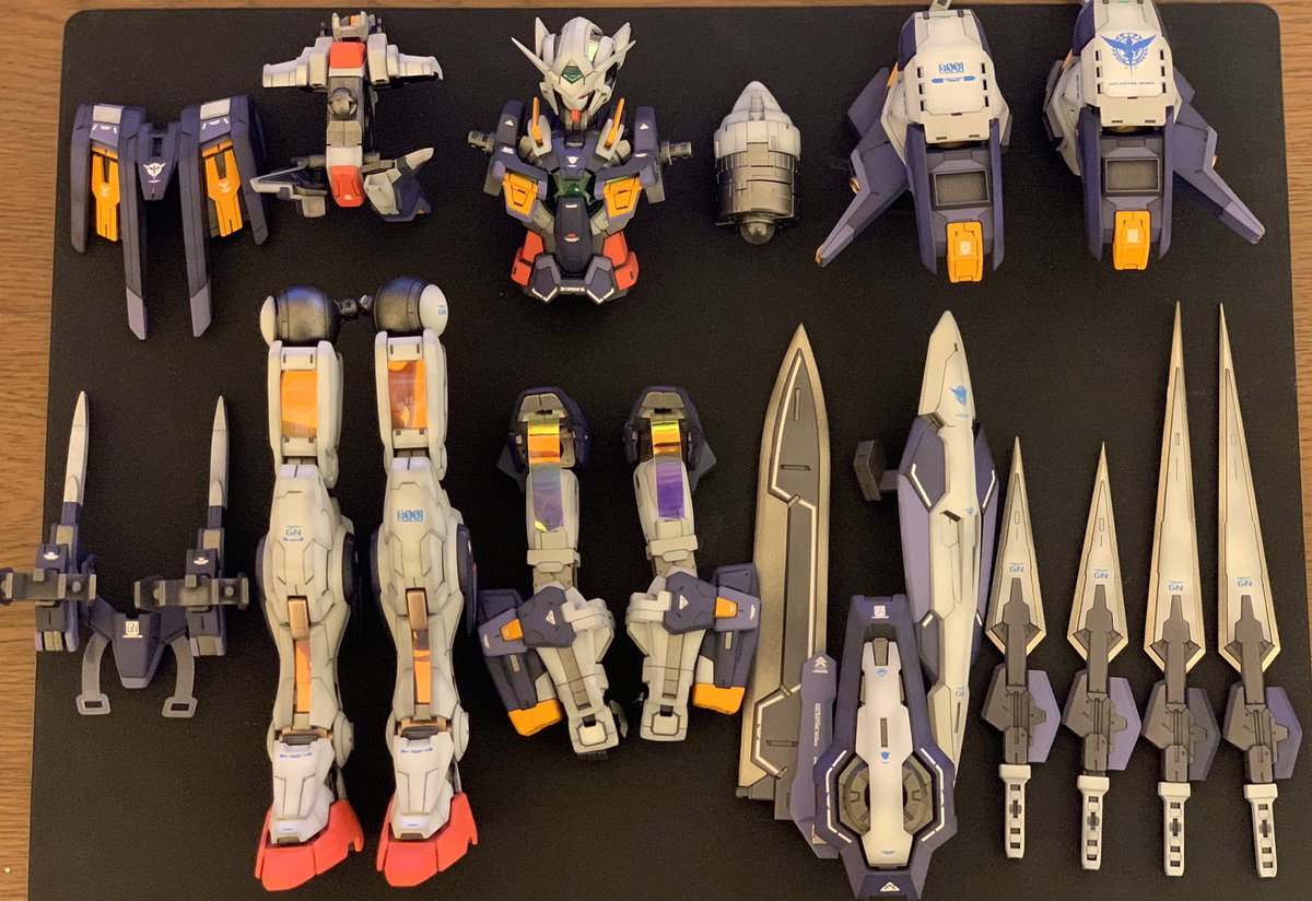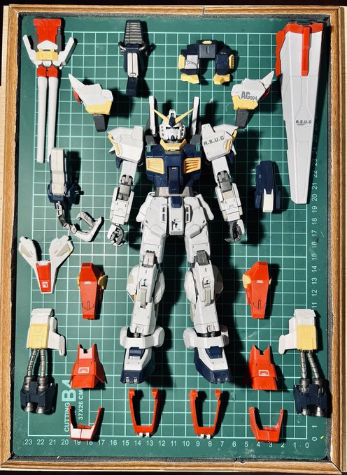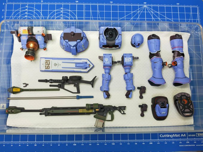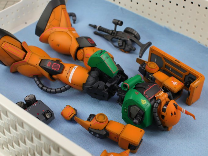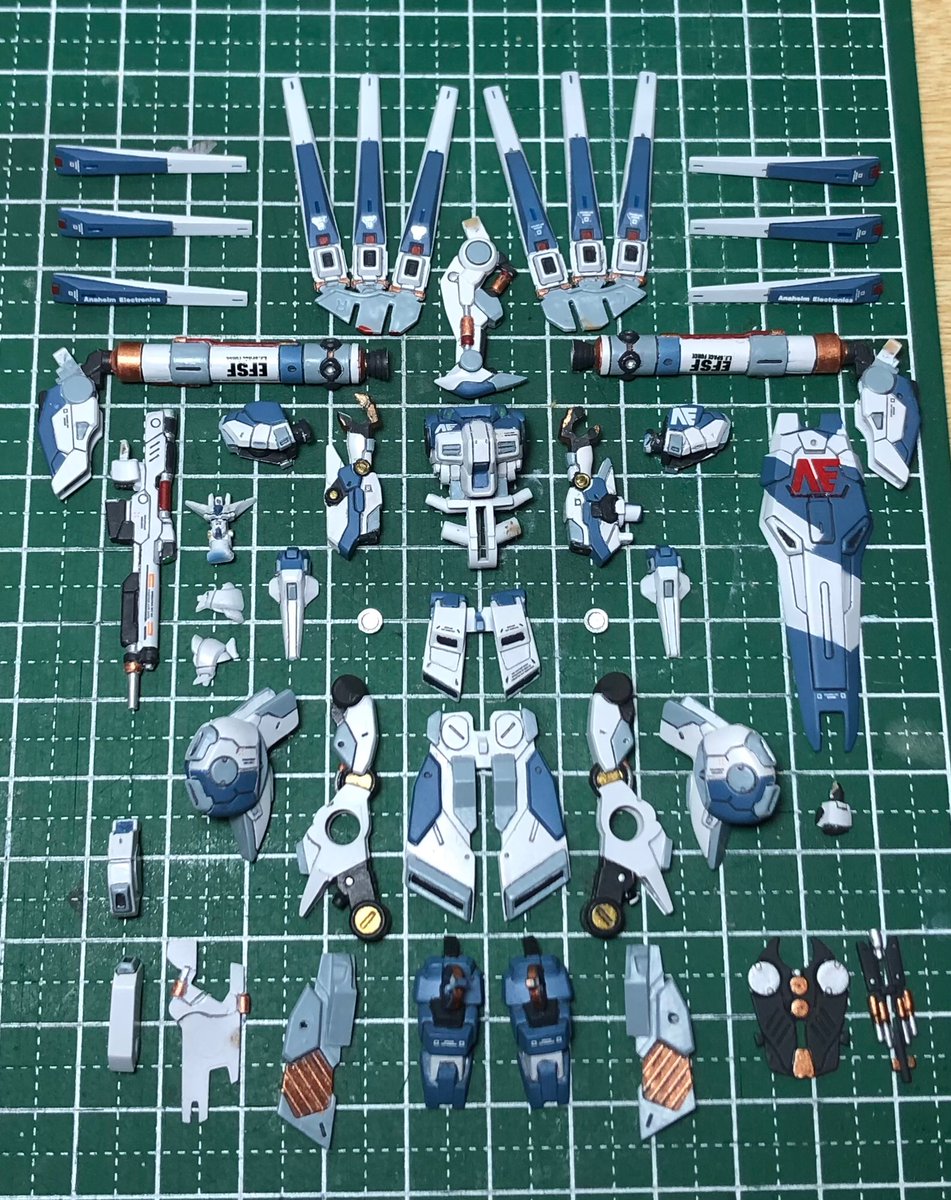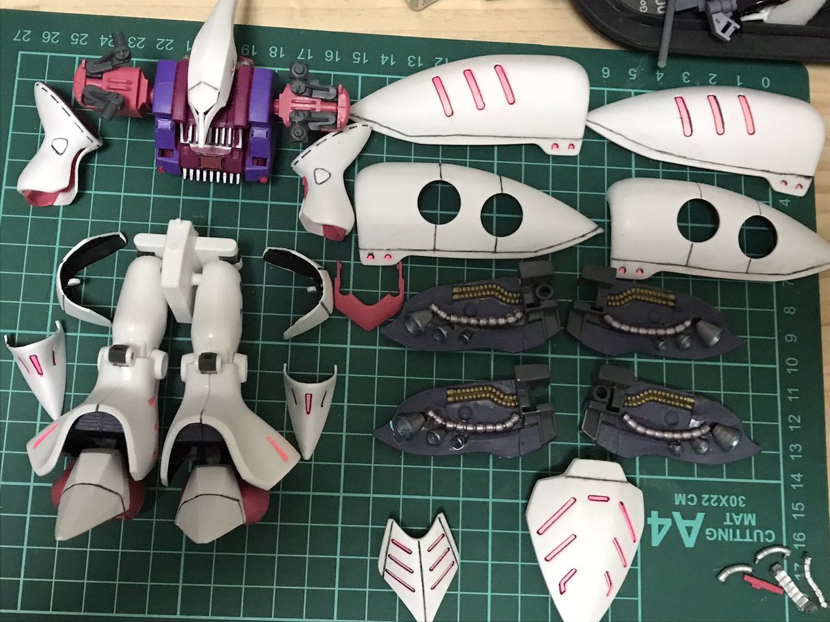 #完成目前のドキドキする素敵なパーツを並べてるのを見たい ほぉ。こんなタグがあるのか。 タグに合うやつは1体分しかないが……… #ガンプラ好きな人と繋がりたい #ガンプラ #ガンプラの画像を貼るとRTされると聞いて