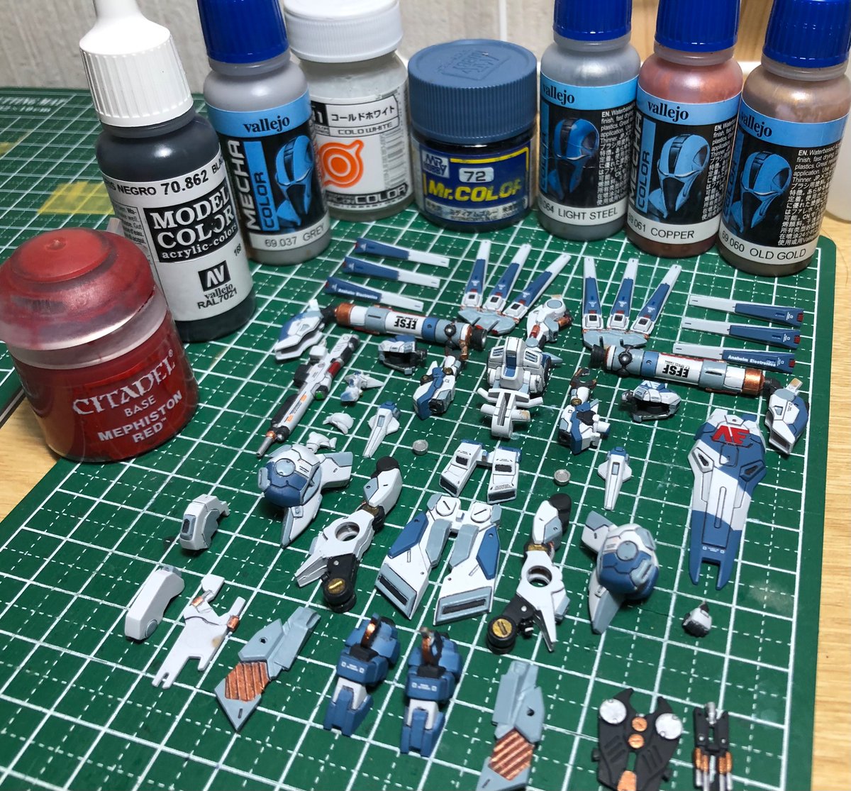 並べてるのは筆塗りで塗装した時だけですね。 #完成目前のドキドキする素敵なパーツを並べてるのを見たい #ガンプラ #ガンプラ好きと繋がりたい #ガンプラの画像を貼るとRTされると聞いて #フォローお願いします