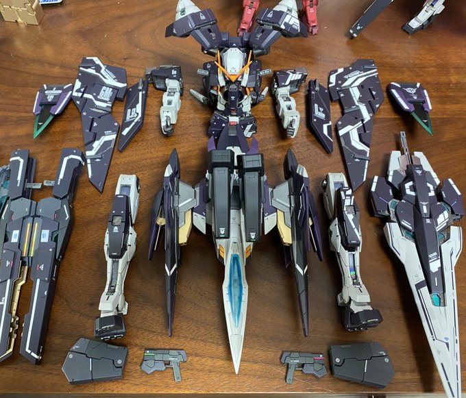 ガンダムハルート最終決戦仕様、塗装完了!塗り分け個所意外と多くて、手間掛かりました😅。 サバーニャはすでにスタンバイ。揃い踏みが楽しみです😆。 しかしこれが今月のモデグラと被るとは寒すぎる🥶 #完成目前のドキドキする素敵なパーツを並べてるのを見たい