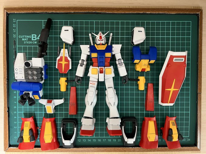 ようやくデカール貼り終えたので、 組み立て行います。 傷つけないように組み立てます。 #完成目前のドキドキする素敵なパーツを並べてるのを見たい #ガンプラはどんな自由な発想で作ってもいいんだ #ガンプラ