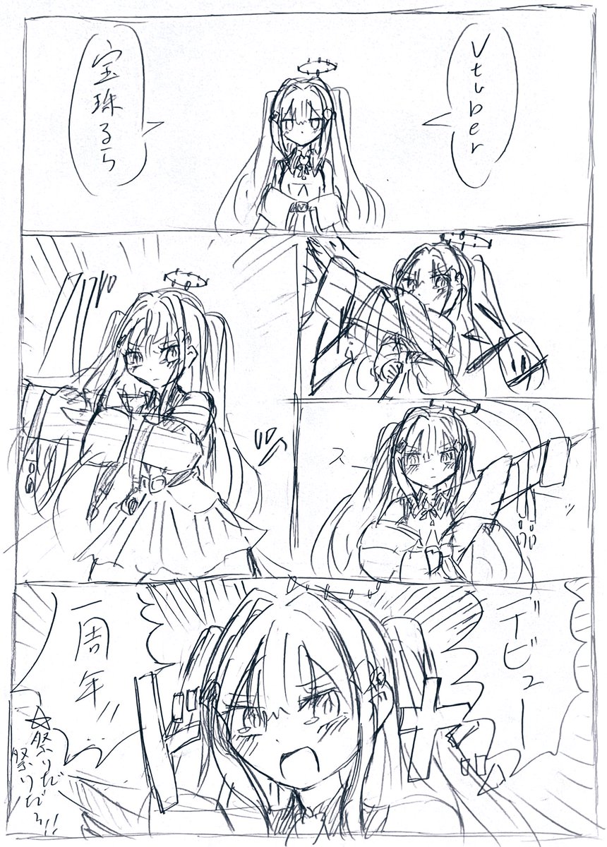 #西時の1日1絵【724日目】 今日は宝珠るら1周年記念マンガ的なやつ描いた 俺はあなたを推しに出来たことを誇りに思う。1周年おめでとう。永遠に大好き #絵描きさんと繋がりたい #るらのあるばむ #宝珠るら1周年記念