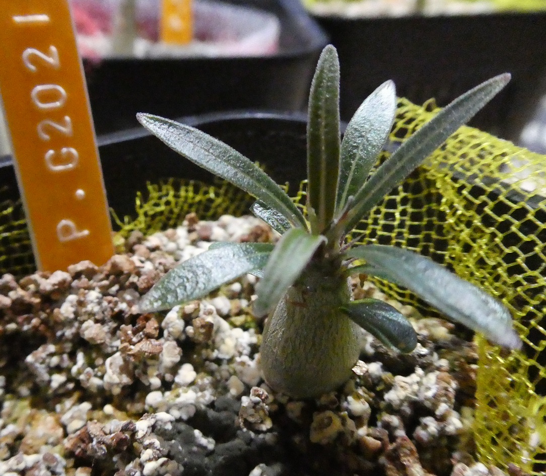 今週の #グラキリス その①。実生観察から3か月が経過した。B君はスリット鉢から根が出てきている。C君は惚れ惚れするポッテリ感。どれもちょっとボディが木質化してきている? #パキポディウムグラキリス #実生