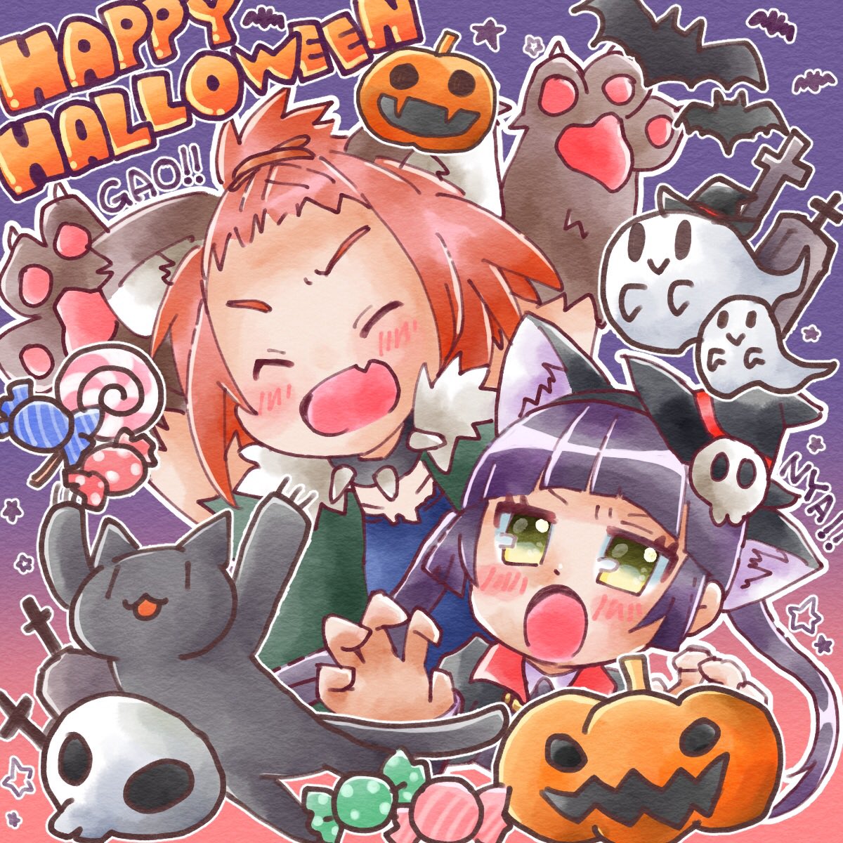🎃👻HAPPY HALLOWEEN🦇🎃 Dress up and enjoy Halloween!! 仮装して楽しんでる〜?? #実行委員会シリーズハロウィンパーティー #ハニワ美術部 #ハロウィンイラスト #イラスト