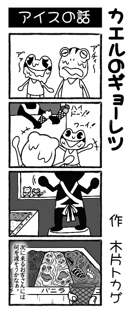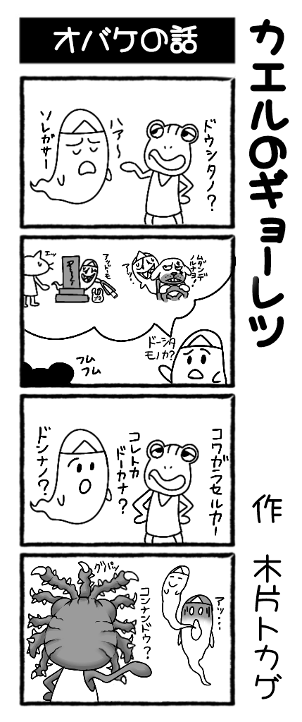 @chiplizard1 作 4コマ漫画 【カエルのギョーレツ】 twitterにて1日1話公開中! 第38回は『オバケの話』です。 #漫画が読めるハッシュタグ #4コママンガ #4コマ漫画 #カエルのギョーレツ #オバケ #恐怖 #木片トカゲ #宣伝