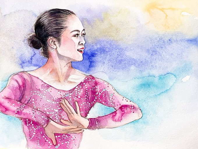 ずっと描きたかった宮原知子選手🌸 深く心に届く演技の数々をありがとうございました🌸🌸🌸 さっとんに幸多かれ🎉🎉🎉 今後のご活躍も楽しみにしています❣️ #宮原知子 さんらしきもの #satokomiyahara #Thankyousatoko 遅くなりすぎた #HBD #watercolor #fanart